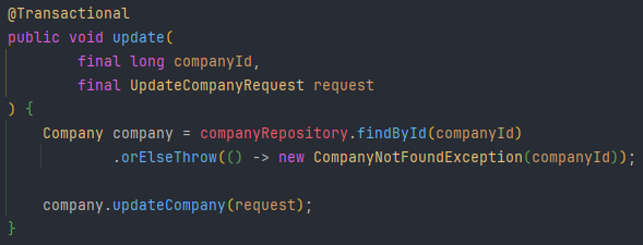 Service์์ id๊ฐ์ผ๋ก ํด๋น ์ํฐํฐ๋ฅผ ์ฐพ๊ณ