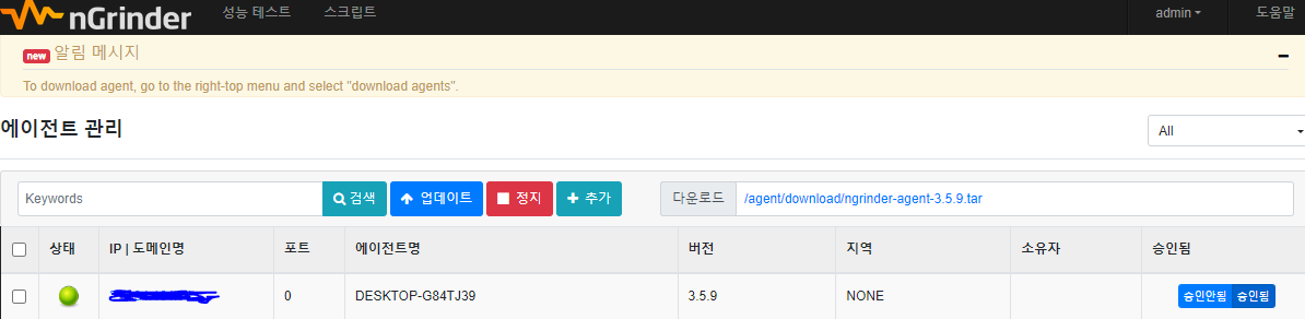 (nGrinder 3.3 이후부턴 연결된 에이전트는 컨트롤러에 의해 자동 승인됨)